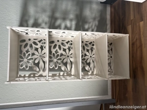 Leichtes Regal in Weiß Breite 40 cm Tiefe 23 cm Höhe 100 cm Nur ganz leichte Gebrauchsspuren Kann in Lochau oder Mo bis Do von 8 bis 15 Uhr in Wolfurt Nähe Baywa abgeholt werden