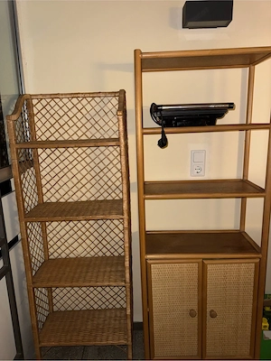 Verkaufe zwei praktischen Regale im natürlichen Look. Perfekt für Wohnzimmer, Balkon, Bad oder Abstellraum. Beide Möbel sind gebraucht, sind aber stabil und voll nutzbar. Nur an Selbstabholer abzugeben.