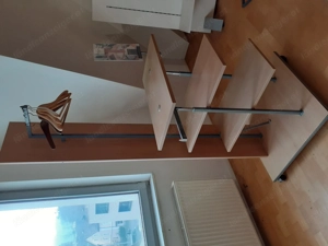 Die Regalfächer können auch in unterschiedlichen Neigungen eingehängt werden. Maße in cm: Grundfläche ca. 110x110, H 140 Zustand sehr gut. Bisher nur im Lager gestanden. Es sind noch viele andere Artikel rundum Präsentation von Artikeln und Kleidung erhältlich. Barzahlung bei Abholung.