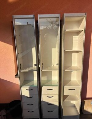 Der Grund des Verkaufs, Platzmangel und fehlende Raumhöhe. Das Regal mit Glastür auf dem Foto wird mit 2 grossen Schubladen verkauft, siehe hierzu die weitern Fotos. (foto 1 dient nur als beispiel zur veranschaulichung, da ich wegen raumhöhe das regal nicht aufbauen konnte) Alles gereinigt und Top ...