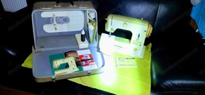 schöne alte elna mit koffer und kleinmaterial , von nähmechaniker servieciert und überholt! ich habe mit leichtigkeit einen lederrucksack mit meiner elna genäht! 1 jahr garantie auf die maschine !mit nähvideo. die maschine näht diverse stiche. wird auch versendet.