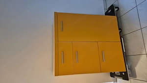 Verschenke gut erhaltene Kommode. Farbe: Orange Maße: b=86cm, h=104cm, t=39cm 1 Tür - 3 Schubladen