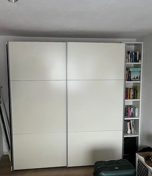 Ich verkaufe einen gut erhaltenen Kleiderschrank mit Schwebetüren in schlichtem, modernem Design. Der Schrank bietet viel Stauraum und wird durch ein praktisches seitliches Regal ergänzt. Maße Kleiderschrank: Breite: 200 cm Höhe: 220 cm Tiefe: 60 cm Maße Regal (rechts): Breite: 42 cm Höhe: 220 cm Tiefe: ...