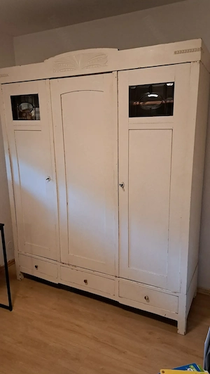 Verkaufe 100 Jahre alten schönen Schrank leichte Gebrauchsspuren 3 Türen (2 Türen mit Glas) 3 Schubladen Keine Garantie oder Rückgabe möglich da Privatverkauf
