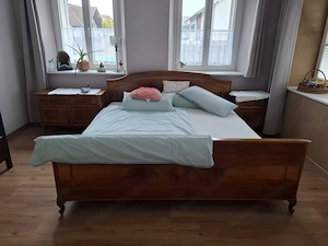 Aus Platzgründen Holzbett und 2 Nachtlästchen abzugeben.
