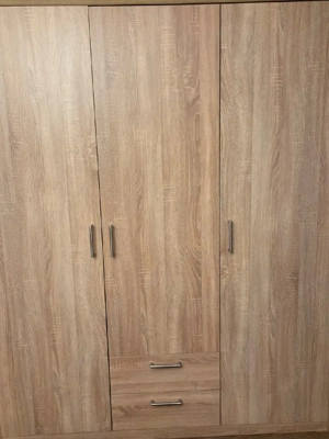 1. Kleiderschrank mit zwei Türen, 190cm hoch, 106cm lang, 53cm breit. 2.Kleiderschrank mit drei Türen, 190cm hoch, 160cm lang, 53cm breit. Beide sind ein halbes Jahr alt und werden auf Grund eines Umzugs beide zusammen um 500 Euro weggegeben.
