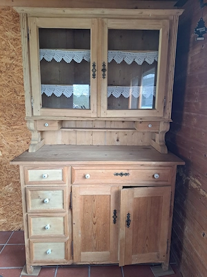 Der Schrank hat die Abmessungen 95x45 x188 Der Schrank ist Restaurierungsbedürftig, ein Fuß ist lose, Einlegeböden fehlen und die Oberfläche hat Abnutzungen. Selbstabholung und Abbau