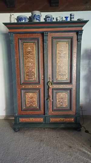 Schöner Schrank mit 2 kleinen Kästchen und Kommode mit Spiegel. Handbemalte Holzmöbel Im Set oder einzeln abzugeben. Mach mir ein Angebot.