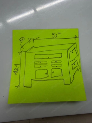 Länge: 160cm Breite: 50cm Mit 4 kleinen Schubladen und 4 länglichen Schubladen. Gebrauchsspuren sind vorhanden.