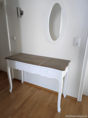 schöner Schminktisch, guter Zustand wegen Umzug zu verkaufen. Maße: L 120cm, T 48cm, H 81cm .