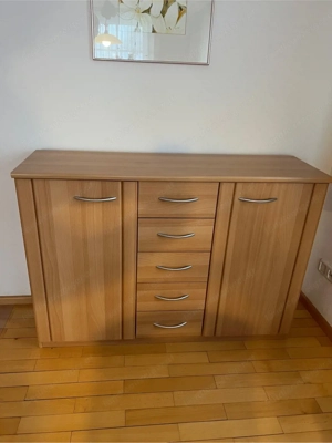 Kommode Die Kommode ist gebraucht aber in einem guten Zustand. Buche mit verchromten Griffe 125*37*88 (LxBxH) Die Kommode befindet sich in wir Nichtraucher- sowie haustierfreien Wohnung im 1. Obergeschoss. Bitte beachten Sie auch meine anderen Angebote (Möbel, Bekleidung, Spielsachen).