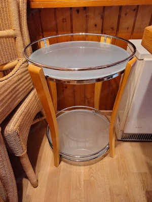 Runder Tisch mit zwei Glasplatten und Holzbeinen, schöner Zustand, hochwertiges Design