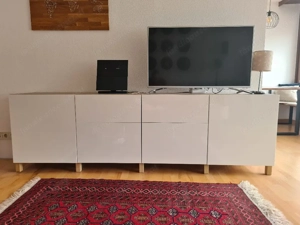 Ikea Kommode Breite 240cm Tiefe 42cm Höhe 74cm Fronten weiß Hochglanz, Korpus Eichennachbildung weiß lasiert Es sind eigentlich zwei spiegelverkehrte Kommoden, die über einen Fuß zusammengeschraubt sind, bestehend aus je einer Schublade, einer kleineren Tür und einer größeren Tür mit einem Einlageboden. ...