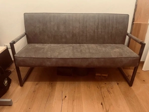 Ich verkaufe eine moderne Sitzbank. Die Bank überzeugt durch ihr schlichtes, zeitloses Design mit robustem Metallgestell und einer bequemen Sitzfläche in Lederoptik. Details: - Länge: 160 cm - Sitzbreite: ca. 45 cm - Farbe: Braun Vintage- Optik - Gestell: Metall, schwarz - Zustand: gut, mit leichten ...