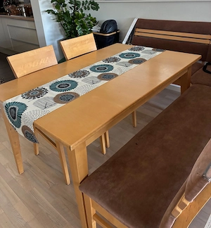 Verkaufe Esszimmer Garnitur in Kernbuche, bestehend aus Tisch 90x140x75 cm, Sitzbank mit 140cm Länge sowie zwei Stühlen