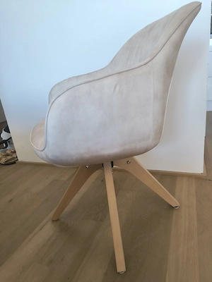 4 Esszimmer Stühle beige, Stoff Samt, Füße aus Echtholz buchefarben, Sitzfläche um 360 drehbar. based von Mömax Breite Höhe Tiefe: 60 82 61 cm Die 4 Stühle sind neu, unbenutzt, wurden alle nur aufgebaut, keine Schäden oder Mängel. Originalverpackung nicht mehr vorhanden. Werden verkauft, da sie nach ...