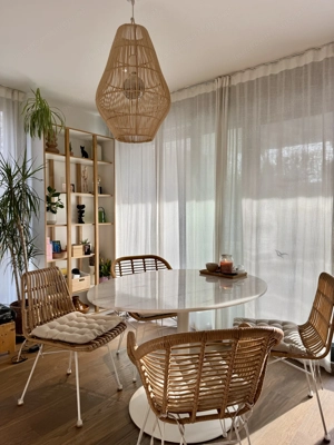 Der Bistro-Stuhl ist ein Hingucker an jedem Tisch und dazu ist er super bequem! Wir würden ihn auch behalten, nur passt er farblich, nach unserem Umzug, nicht mehr zu unseren Möbeln. Möglich wäre auch, ihn gegen einen naturfarbenen Stuhl im gleichen Zustand zu tauschen. Der Stuhl steht mittlerweile ...