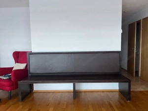 Maße: 240x105x55cm Aufgrund Platzmangel Umzug verkaufen wir unsere dunkelbraune Essbank. Die Polsterung besteht aus Echtleder und ist sehr gepflegt. Das Holz hat leichte Gebrauchsspuren.