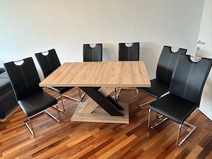 Ausziehbarer Tisch mit 6 Stühlen alles in Top zustand, schwarz & Eiche Artisan Maße Tisch: Breite: 140-180cm Breite: 90 cm Höhe: 76 cm