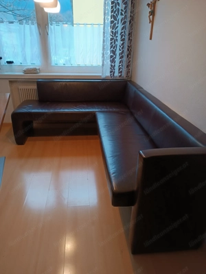 Eckbank mit Tisch und 2 Stühlen braunes Leder