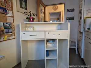 Verkaufe dieses praktische Multifunktionsmöbel in Weiß. Aufgrund der robusten Bauweise und der idealen Arbeitshöhe lässt es sich perfekt nutzen als: Empfangstheke Kasse: Ideal für Läden, Salons oder Büros. Kleine Werkbank Packtisch: Super für Hobbyraum oder Werkstatt (stabil und pflegeleicht). ...