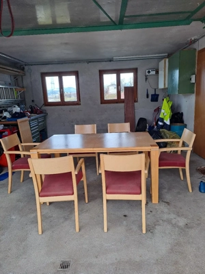 Verkaufe wegen Umzug gr.Tisch ausziehbar+ 6 Stühlen l: 1,60-2,00m,b: 95 cm, h: 75 cm