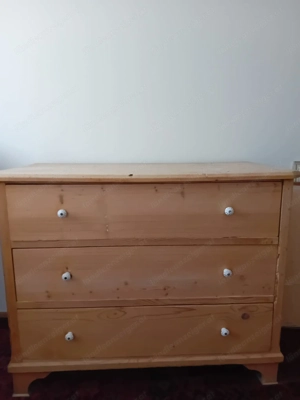 Kommode aus Vollholz günstig zu verkaufen. Maße: 110 cm lang, 57 cm tief und 88 cm hoch. 3 ausziehbare Schubladen. Gut erhalten.
