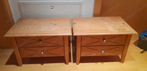 Günstig abzugeben gegen ein "Kässilegeld" sind diese 2 Nachtkästle 62x42x40 (B H T). Die Möbelstücke sind gebeizt und aus Esche.