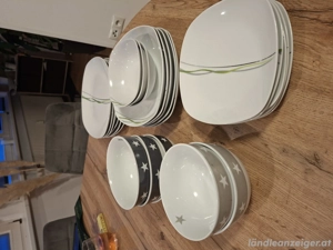 Verkaufe die abgebildeten Teller. 6 Große Teller (25 cm), 5 Suppenteller (22 cm), 5 Dessert Teller (19 cm), 3 kleine Schüsseln (14 cm), 5 Kornflakesschüsseln (14,5cm) Zustand ist Sehr gut. (keine Beschädigungen!) Nur komplett und nur Abholung!