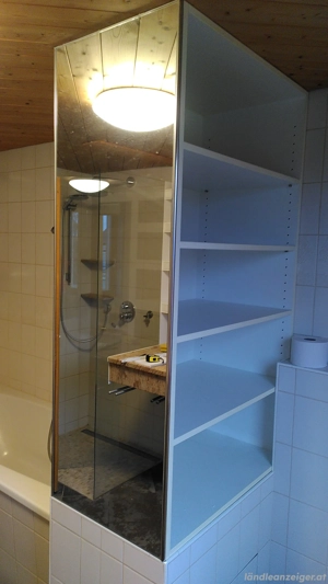 Regal offen, weiß Maße in cm: H: 146,5; B: 82; T: 50 Rückseite plus 1 weitere Seite sind verspiegelt Preis verhandelbar. Bei Interesse gerne einfach Mal melden. Selbstabholung und evt. gemeinsamer Abbau