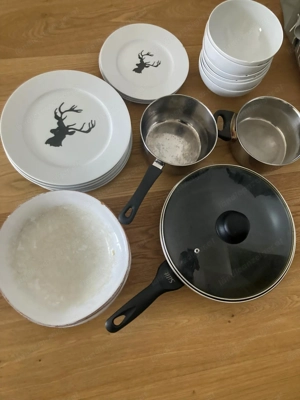 4 kleine Teller 6 große Teller 3 tiefe Teller Pfanne 2 kleine Töpfe