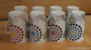 8 Stk. sehr selten gebrauchte Kaffee- Teetassen, bei einer Tasse ist leider ein kleines Eck abgebrochen - siehe Bild. Ansonsten in neuwertigem Zustand. Preis pro Tasse 1. Die Tasse mit Bruchstelle gibt es geschenkt dazu. Komplettpreis 7