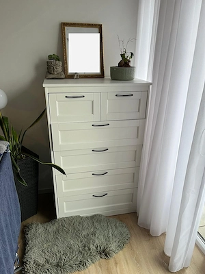 Zum Verkauf steht eine Kommode in der Farbe Weiß (matt) mit folgenden Maßen: Höhe: 125 cm Breite: 82 cm Tiefe: 50 cm Die Kommode befindet sich in einem guten, gepflegten Zustand und bietet viel Stauraum. Sie stammt aus einem rauch- und tierfreien Haushalt. Da wir nicht wöchentlich vor Ort sind, ...