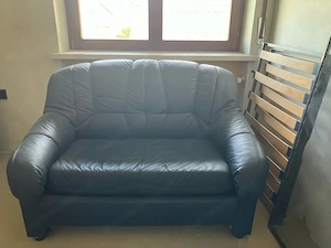 dunkles ausziehbares Ledersofa (Breite ca.130cm, Tiefe ca. 80cm)
