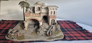 Weihnachtskrippe, orientalischer Stil, 70 cm breit, 60 cm tief, 41 cm hoch, Stiegenaufgang beleuchtet, zu verschenken.