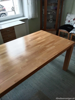 Verkaufe Esstisch Vollholz massiv, 160x90x75 LBH, neuwertig, allerdings ein kleiner Kratzer an der Tischfläche.