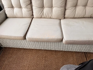 Ich verkaufen unsere stilvolle und hochwertige Gartenmöbel-Lounge in edlem Polyrattan-Design. Das Set besteht aus: 1 großzügigem 3-Sitzer-Sofa 2 bequemen Sesseln 1 Tisch mit Glasplatte inkl. Sitz- und Rückenkissen Die Lounge wirkt modern, zeitlos und passt perfekt auf Balkon oder Terrasse. Sehr ...