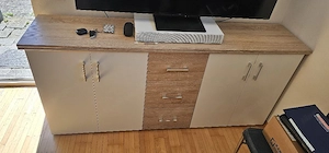 Kommode bzw. Fernsehschrank Die Kommode wurde als Tischlerarbeit in Buche mit Messinggriffe gefertigt (qualitativ hochwertig) 161*57*80 (LxBxH) Da auf der Kommode ein Fernseher gestanden hat, ist die Oberfläche der Platte etwas unterschiedlich. Müsste sich aber mit der Zeit anpassen. Für den Transport ...