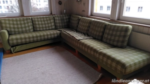 Große Couch, linker Teil unterhalb beschädigt, Rest hat Gebrauchsspuren, aber ansonsten gut - gerne Vorort selber ein Bild davon machen; gibt zusätzliche Auflage in gleichem Stoff für einen Teil der Sitzbank Selbstabholung