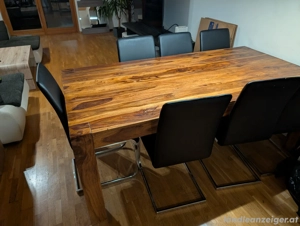 Verkaufen hier einen Vollholz Akazien gebeitzter Tisch inkl. 5 Stühlen Tischmasse: 209 x 94 cm Preis kann verhandelt werden. Ohne Deko. Nur Abholung möglich.