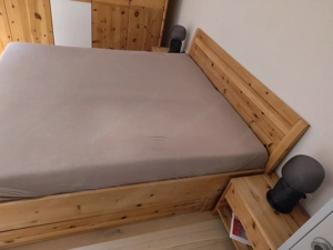 Verkaufe Schlafzimmermöbel aus Zirbenholz. 6 Jahre alt und wenig genutzt. Neupreis 6.000 Euro Maße Bett: 210x198cm LxB Schrank: 220x255x70cm HxBxL