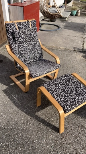 Schwingsessel mit Hocker, IKEA, Birkenfurnier