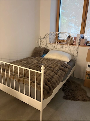 Hübsches weißes Holzbett mit 2 Lattenrostern 1.40x200