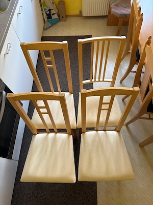 4 Stühle aus Platzmangel zu verkaufen weißes Polster helles Holz sehr guter Zustand leichte Gebrauchspuren