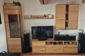 Wegen Umzug verkaufen wir unseren hochwertigen und sehr gepflegten massivholz-Wohnzimmerverbau in Kernbuche. Keine Gebrauchsspuren - absolut neuwertig!! Das Set besteht aus (L x B x H): - Glasschrank 58 x 38 x 203 - Hängeboard 135 x 17 - Hängeschrank 90 x 40 x 103 - Kommode 175 x 40 x 105 Die ...
