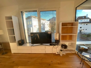 Wegen Umzug wird diese neuwertige Wohnwand, bestehend aus Vitrine (Höhe: 159 Breite: 105,1 Tiefe: 41,5) TV-Board (Höhe: 67,8 Breite: 131 Tiefe: 41,5) Schrank (Höhe: 200 Breite: 70,5 Tiefe: 41,5) und einem Wandboard Regal (nicht im Bild, noch original verpackt) verkauft. Türen und Schubladen mit Soft ...