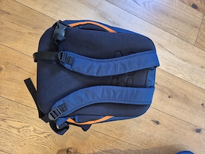Wickelrucksack mit vielen Fächern. Box für Feuchttücher und Wickelunterlage.