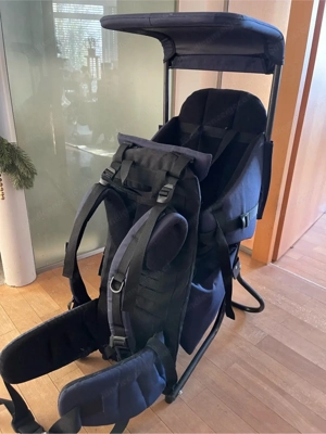 Rückentrage, Marke Kohle Bergsport, blau, mit Sonnendach, gegen Abholung 45