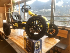 verkauft wird ein BERG Gokart Rally DRT 3 Gang Yellow in sehr guten Zustand Details: Für Kinder von: 4 bis 12 Jahren Mit einer Körpergröße von: 110 - 150 cm Sitz Verstellbar (Pedal GoKart wächst mit) einfach heben und verstellen Funktionen: Soundbox mit Motoren- und Bremsgeräuschen im Lenkrad Antrieb: Brems-, ...