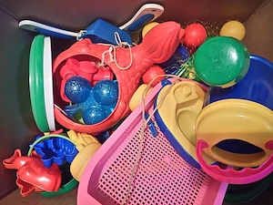 Verkaufe Spielzeug-Set für Garten, Strand und Sandkasten. Es sind viele hochwertige Markenteile dabei, die stabil und langlebig sind. BIG: Baustellen-KInderhelm (größenverstellbar) Gowi: Eimer, Rechen, Gießkanne Rolly Toys: (Kegelspiel (9 Kegel, 2 Bälle), Rechen und Schaufel, Sandförmchen Androni ...